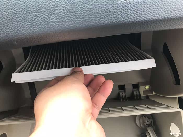 真的很脏,慢慢的抽出空调滤芯