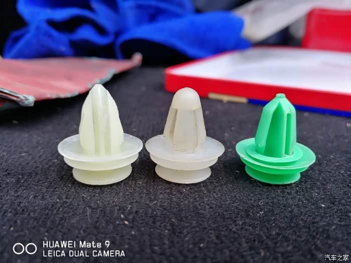 这三个卡扣,中间的是原车的,右侧的是上次换的,左侧的是这侧用的,质量还是这次买的好。是什么尼龙加强型,实心的,非常好用。建议大家在更换前一定要备点。