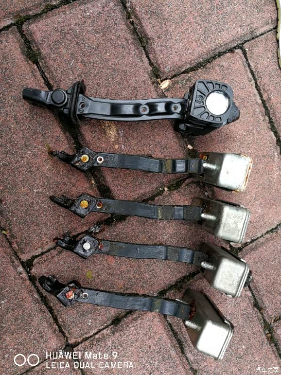 车门限位器早就没用了,一致不想折腾。可前几天车子停的位置稍微有点坡度,老婆就被车门夹了一下,腿上青紫了好几天,现在想想都还后怕。现在不是想不想,是必须要换了。研究了不少前辈大咖的帖子,在网上买了途观的限位器,又买了高强度螺丝,车门卡扣,自攻螺丝垫等物品,今天休息就动手了!