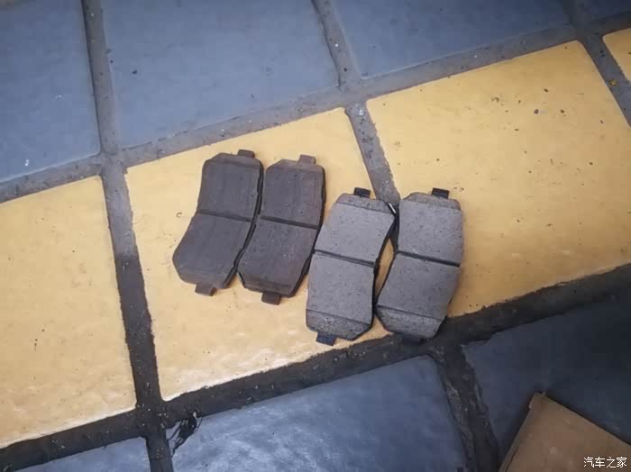 这就是两边拆下来的就刹车片,大家看那边缘的铁片都已经磨亮了。