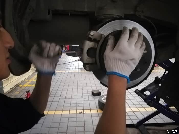 最后检查完毕后师傅说这后轮刹车片必须要更换了,若果再不换会伤到刹车盘。经过向4s店询问一套刹车片100多元还不贵,所以当即决定更换!毕竟自己的车要好好爱护嘛!下面就来分享第一次为爱车更换刹车片吧!
