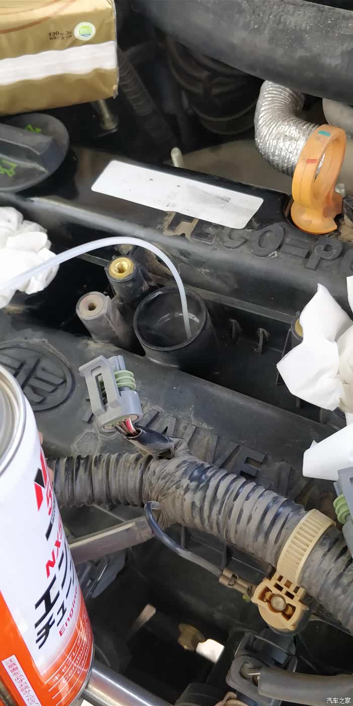 跟论坛学习的,清理气缸,买了4瓶大风NX5000,四个气缸加节气门一共用了三瓶拆点火线圈火花塞我就不说了,论坛车友发的帖子里面有详细教程