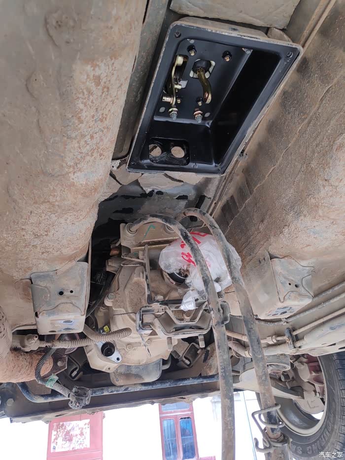 第一步先拆掉传动轴,然后拆掉变速箱下面的横梁。