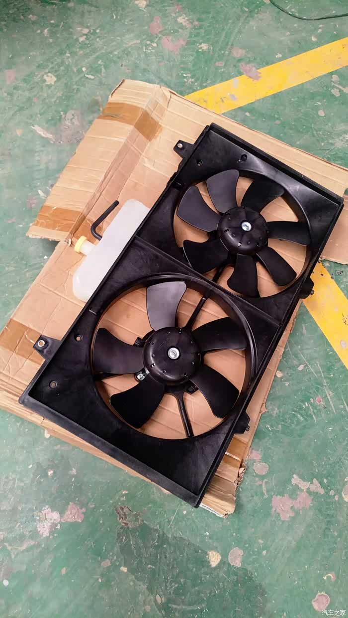 无奈之下今天刚好周末去朋友店里逛的时候路过汽配城我就去马自达,奔腾的配件那里买了一个原厂的电子风扇总成。有副厂有原厂的,最后我选择了原厂的。我朋友是做汽车音响改装的到了他店里以后,他带着我去他朋友的店。到了他朋友的修理厂,以后给我把水箱,电子风扇换了。把旧的拆下来以后把心得往上装的时候我看见原来电子风扇总成,装上去很简单。