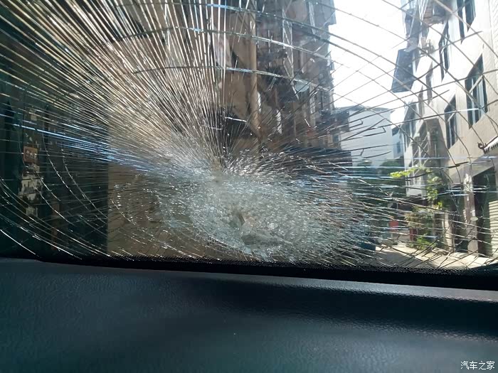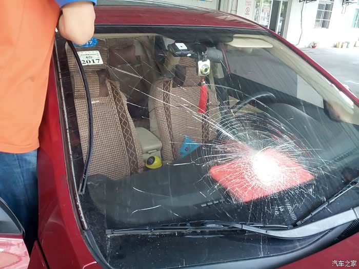 先来一张被砸坏的前档玻璃,好在有贴膜把碎玻璃连在一起,不然满驾驶室的碎玻璃真的很难收拾