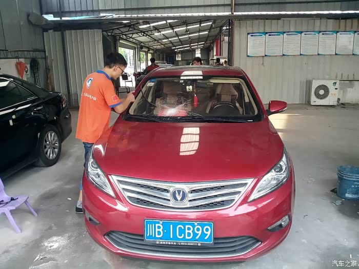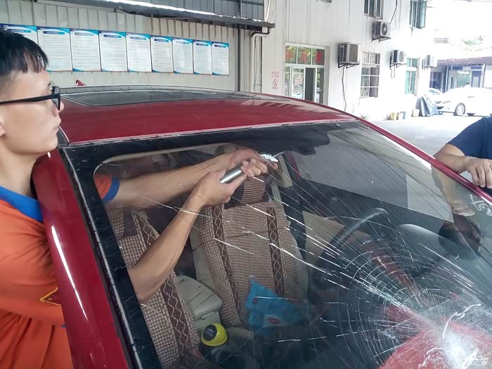 人有悲欢离合,月有阴晴圆缺;天有不测风云,人有祸福旦夕。前段时间,台风来袭时,虽然我们这里不是台风的必经之路,但还是受到了大风的波及;停在自家楼下专用停车位上的爱车逸动被大风从楼顶上吹掉下来的砖头砸坏了前档玻璃。看着前一时刻还是完美无瑕的逸动,突然前档玻璃多出了一个窟窿,使得车内视线一下变得不清晰了,真的是欲哭无泪。既然问题出现了,只有想办法解决;打电话咨询了一下4S店,告知,前档玻璃没有现货,需要申请发货之后才能更换。考虑到前档玻璃视线不清晰,开着出去,肯定不是很安全;而几天不开车,我上班又不方便,果断决定直接在有现货的维修店更换。下面直接上图进入主题!