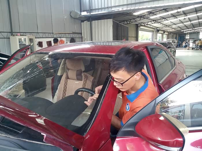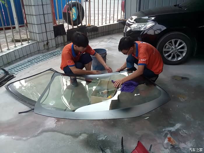 到达更换前档玻璃的维修店