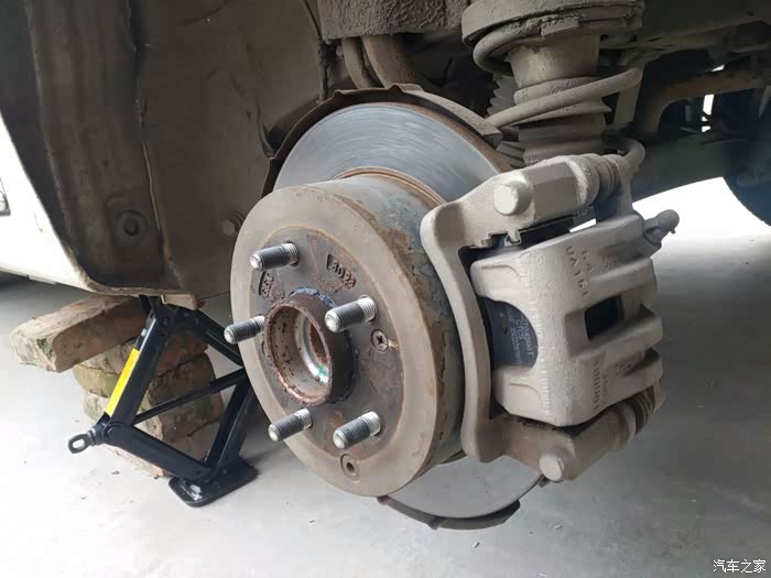 小逸后轮刹车盘,刹车钳特写,五年多还没换过,耐用性非常好