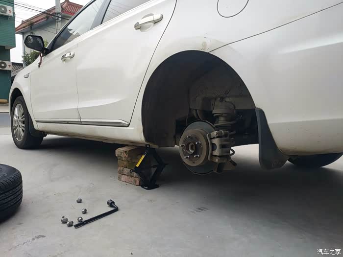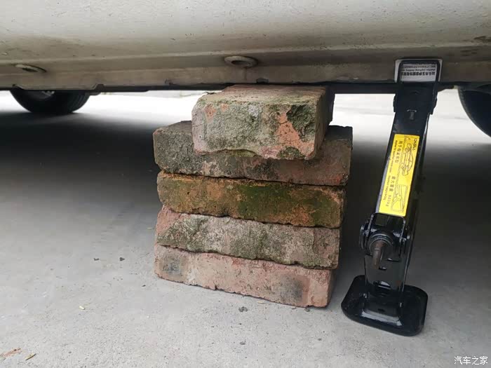 为了安全,当轮胎离开地面时,最好再用砖块支撑