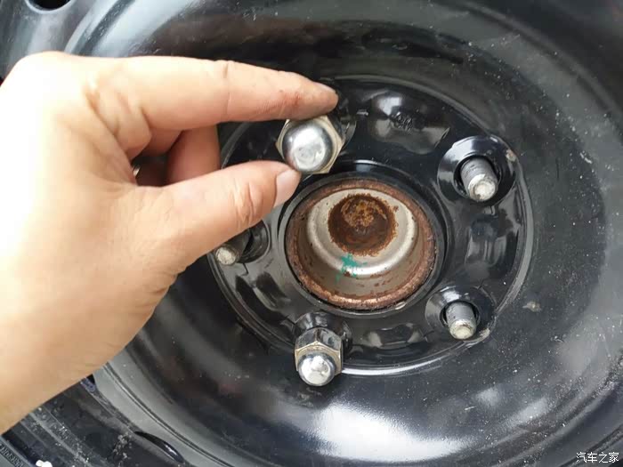 下面开始回装备胎了,将轮胎装上去后,带一颗螺帽