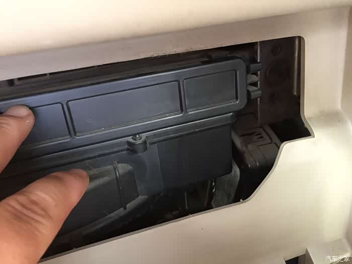 然后把储物箱放下来,就可以看见里面的空调滤芯格!!!!