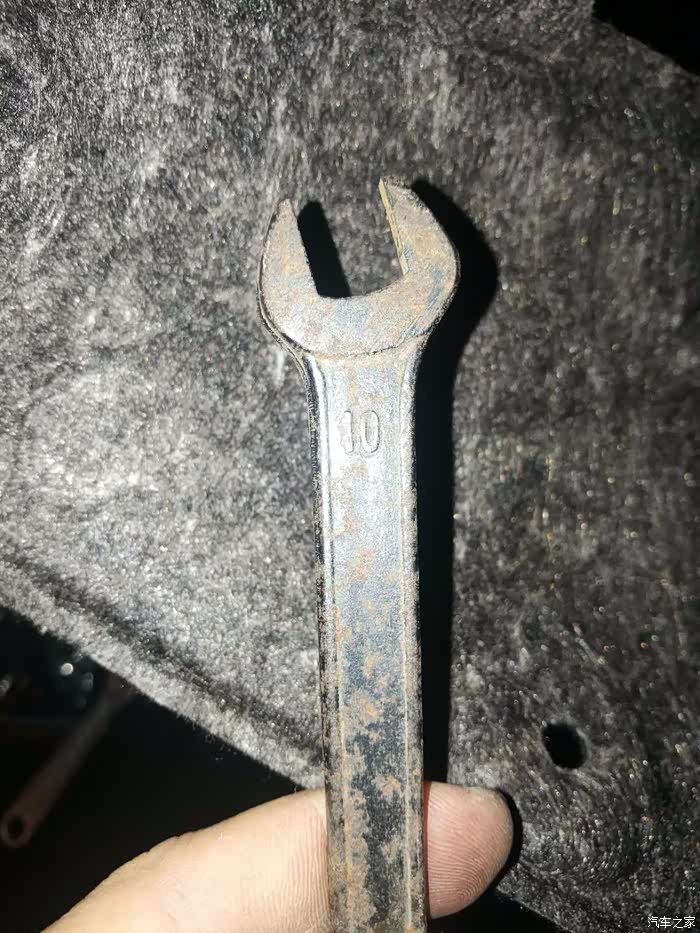准备好工具,一把平头改刀,一个10号固定扳手,新灯泡。此处不建议用活动扳手,空间太小。