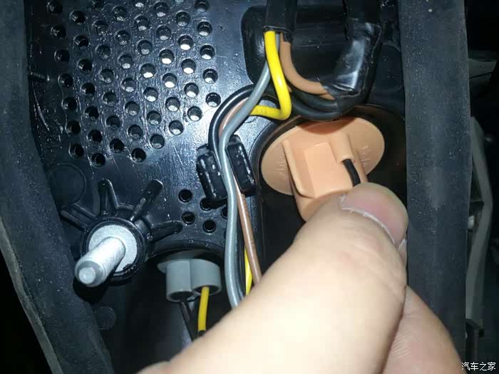 这个黄色的就是刹车灯了。逆时针旋转大概30°,灯座就松掉,很轻松的取下来。