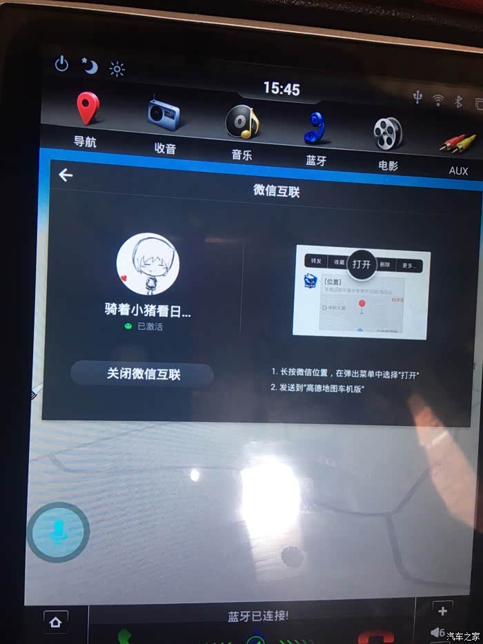 最新高德车机版v3.0.手机与车机互联绑定微信,微信发定位可以直接在高德地图打开,这个功能很实用,省去了边看手机边开车一点安全都没有…