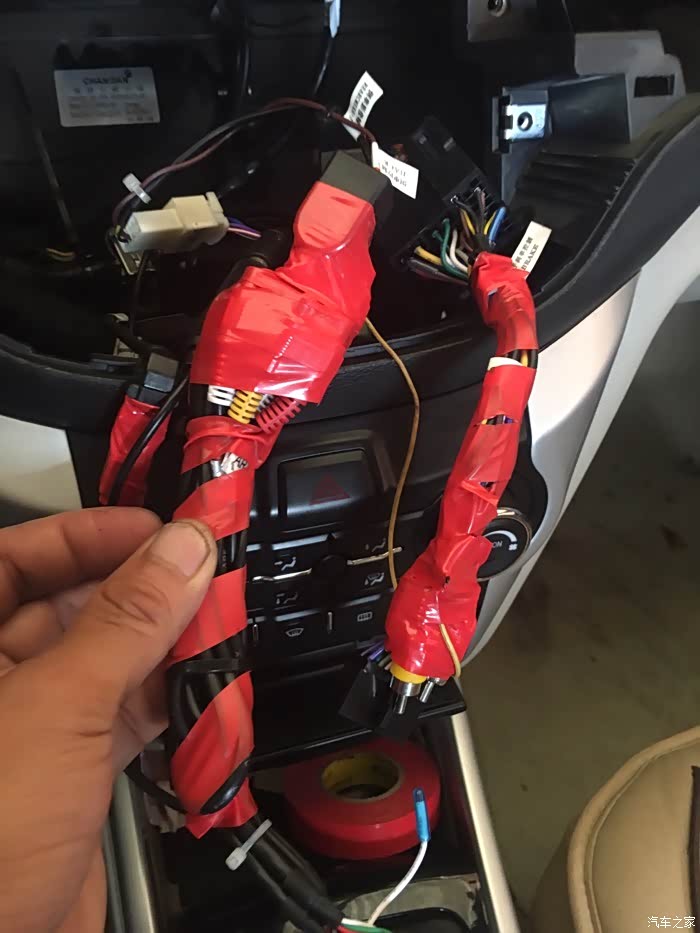 接口对插完毕用胶带包起来,防止以后有异响和借口脱落…