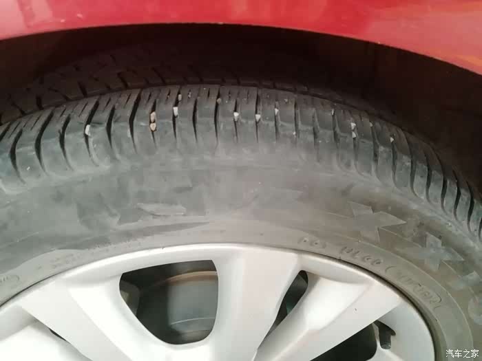 而我的红小逸轮胎虽然状态较好,但是细看皱纹已经布满了轮胎表面,而且有个轮胎的侧壁因为倒车不小心,刮擦掉一点点,为了安全起见,在红小逸四岁的时候,恰逢厂家活动,所以在4S店预订了两个原厂轮胎,为红小逸更换前大脚,助我安全出行。