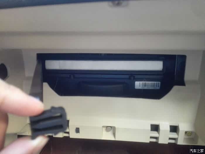 直接向外拉就可以取下手套箱,看见一个黑色的盒子就是安装空调滤芯的