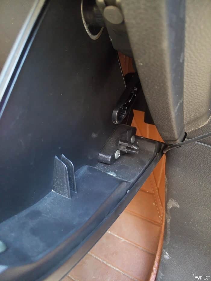 先把储物箱右侧的拉杆的减速杆解套,很容易扣出来,是活的掰不断