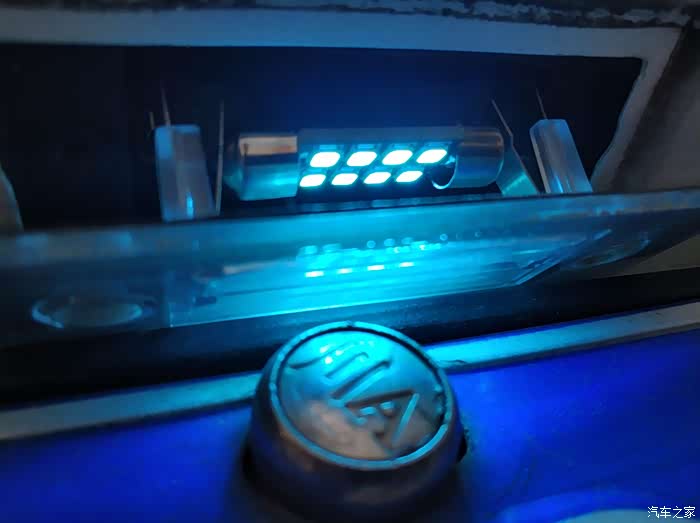 因为我认为:设计师在设计的时候一定有他的道理,他们的前瞻度和审美一定会比我们好一点。不过最近在网上看了有车友把牌照灯改成蓝色的了,感觉很好看,想着自己也试着来小改一下,不是觉得原装的卤素不好看,是想给我的小逸换另外一种美:
