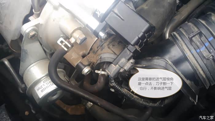 用带来的长螺丝,原位置安装泄压阀,因为宋的泄压阀位置与进气管挨着很近,泄压阀加底座后变长了,所以与管道有点接触,只需要把进气管那个棱角抹掉就行,我直接用刀子割了割,完美安装