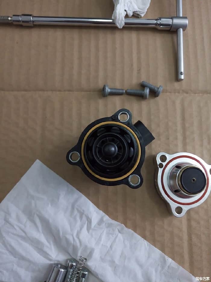 下面开始拆原厂,我是自己拆的,过程很是***,泄压阀有三个螺丝,底部那个工具根本伸不进去,所以进气系统要拆掉,才能下手(我拆之前是查阅好了,才动手的,省去了很多麻烦,建议如果自己动手要查好资料,备好工具再进行)