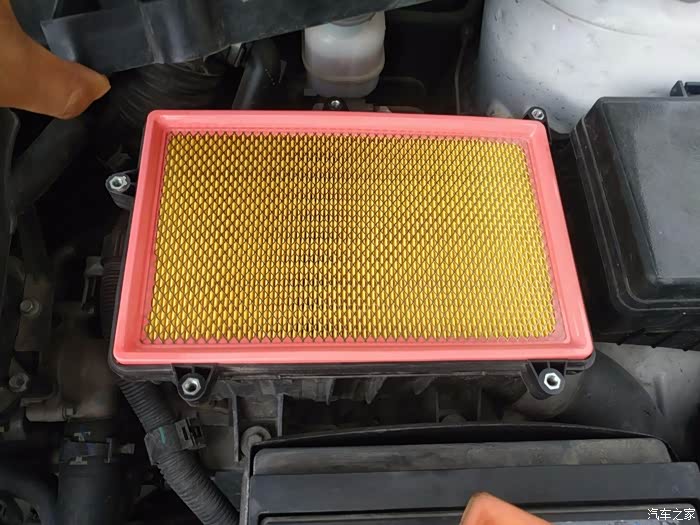 已经有一万公里未换的空气滤清器,看造型有点陈旧了,该换了