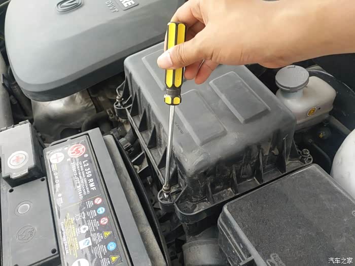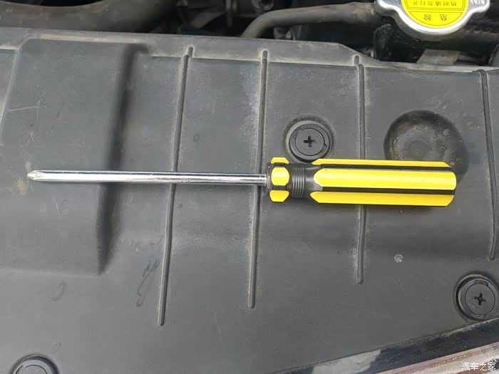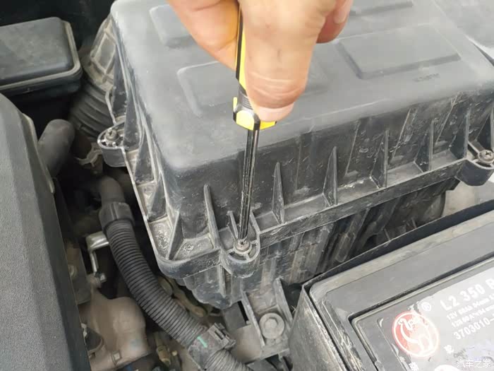 空气滤清器盒子由五颗螺丝固定,用十字改刀拆下来