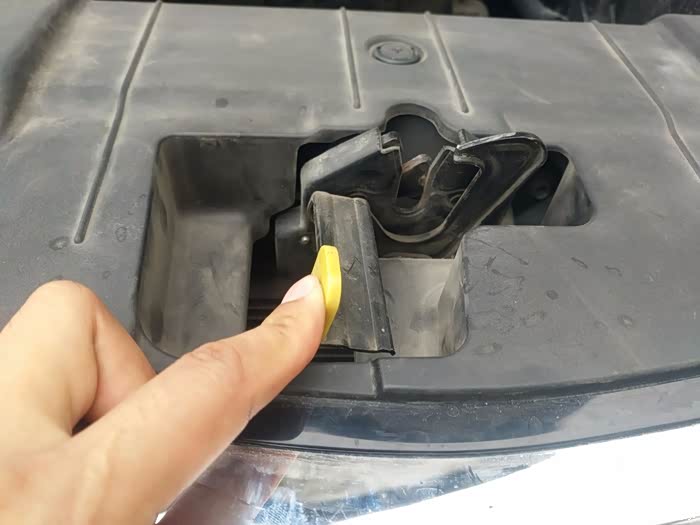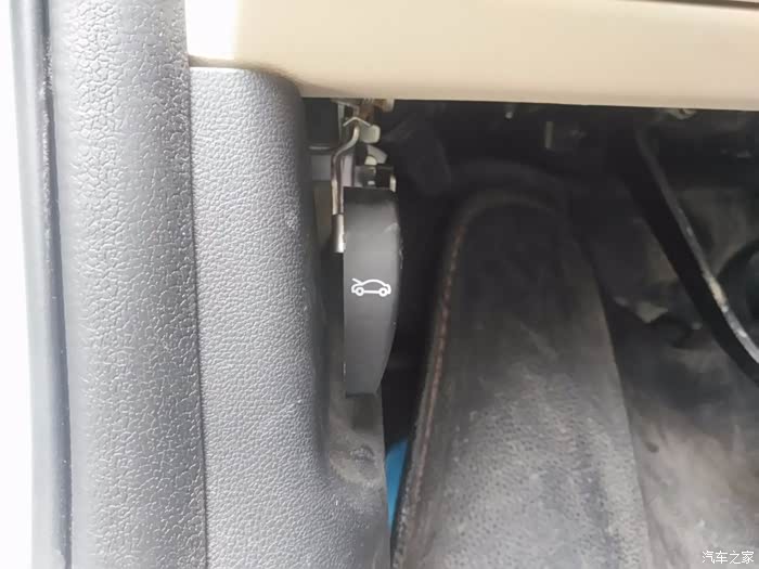 下面开始动手更换空气滤清器第一步,首先打开引擎盖开关,开关位于左脚踏板处
