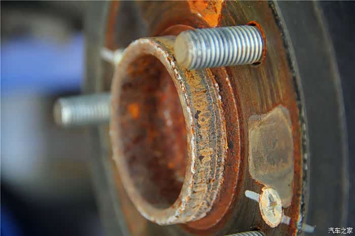 看这里的锈迹斑斑,这还是在年初装过胎压监测时卸过一次轮胎的结果