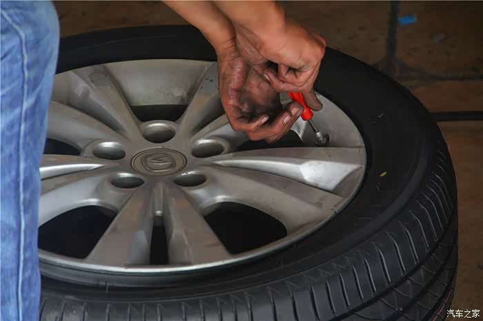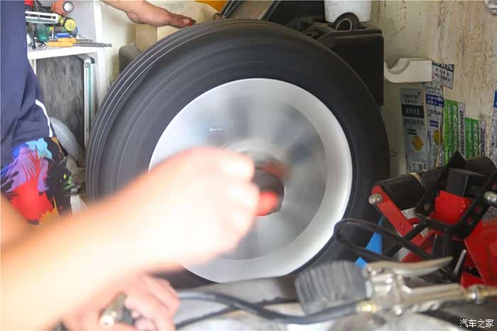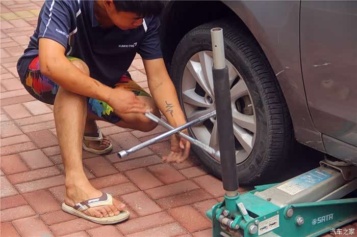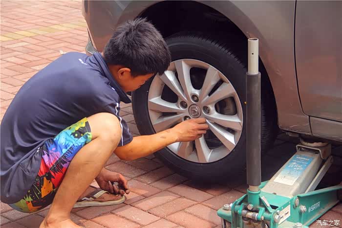 右前轮已经卸下,当然是大锤的伺候。逸动轮胎也是没谁了,要是自己卸,真是弄不下来啊