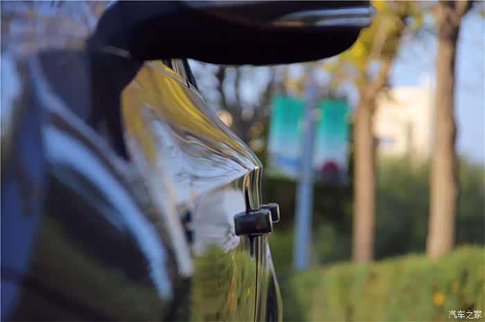 斜向上的腰线,通过车漆的映射车旁的景物,显得更加的突出
