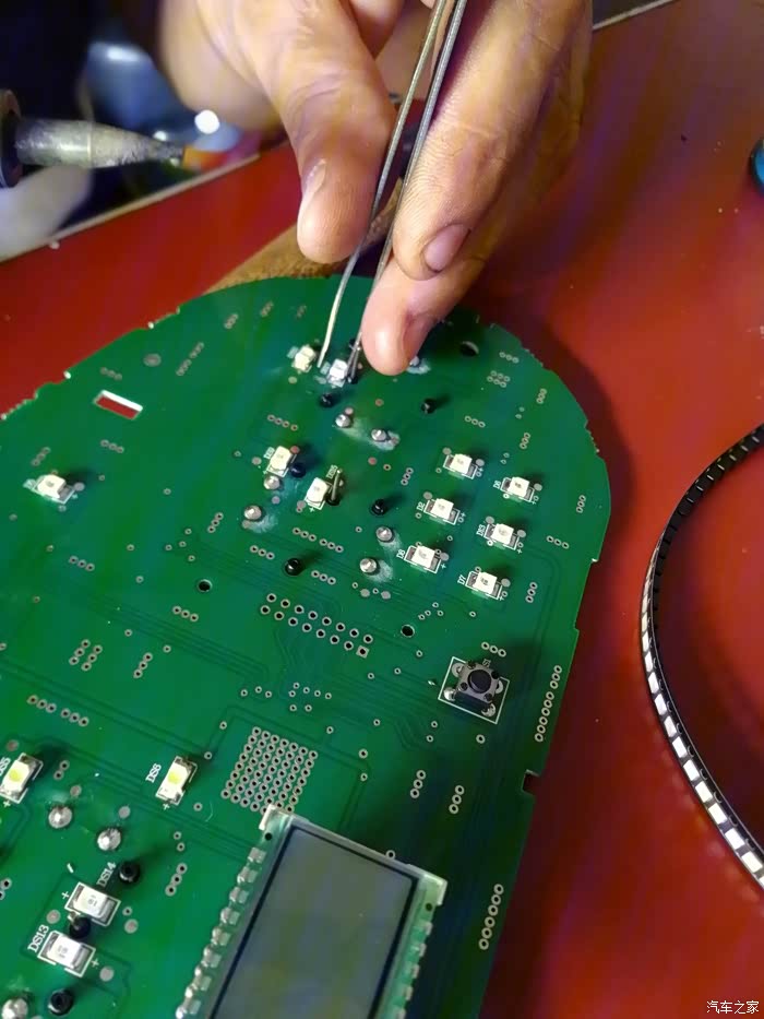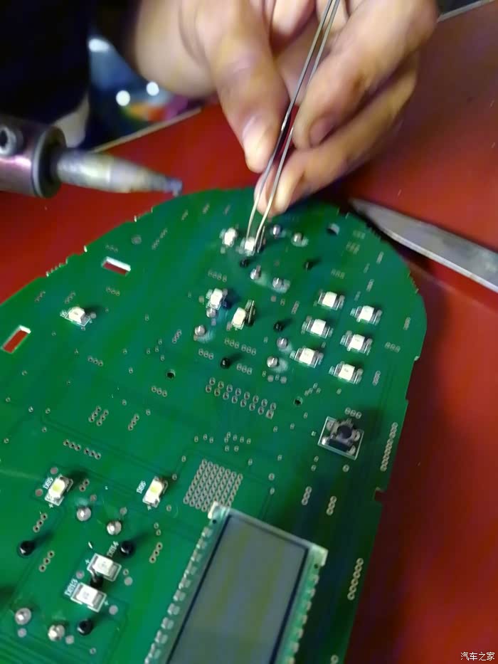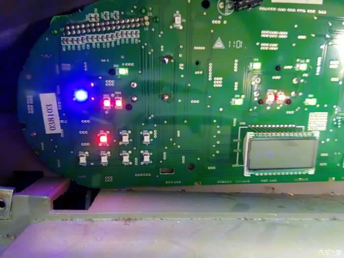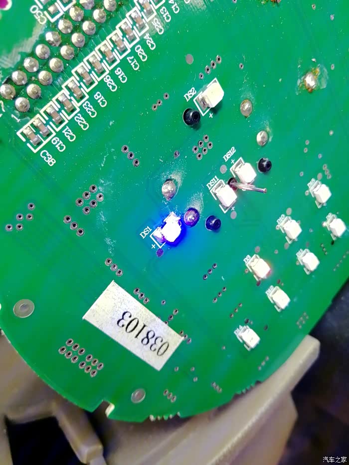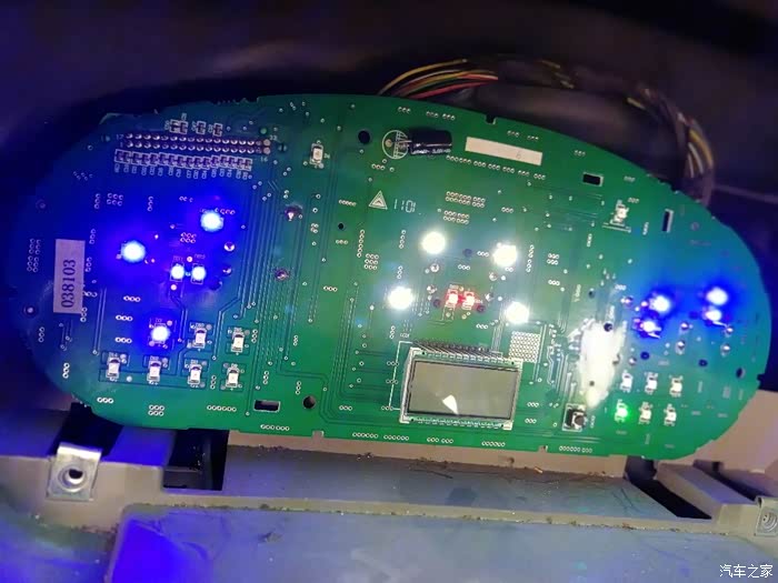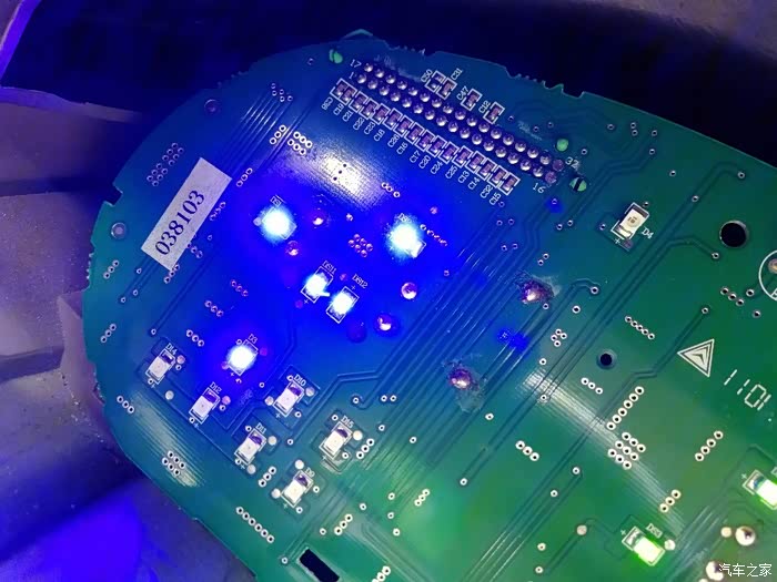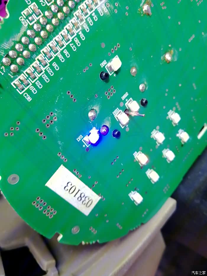 这是焊好第一个,回车里插上测试,蓝灯,完美