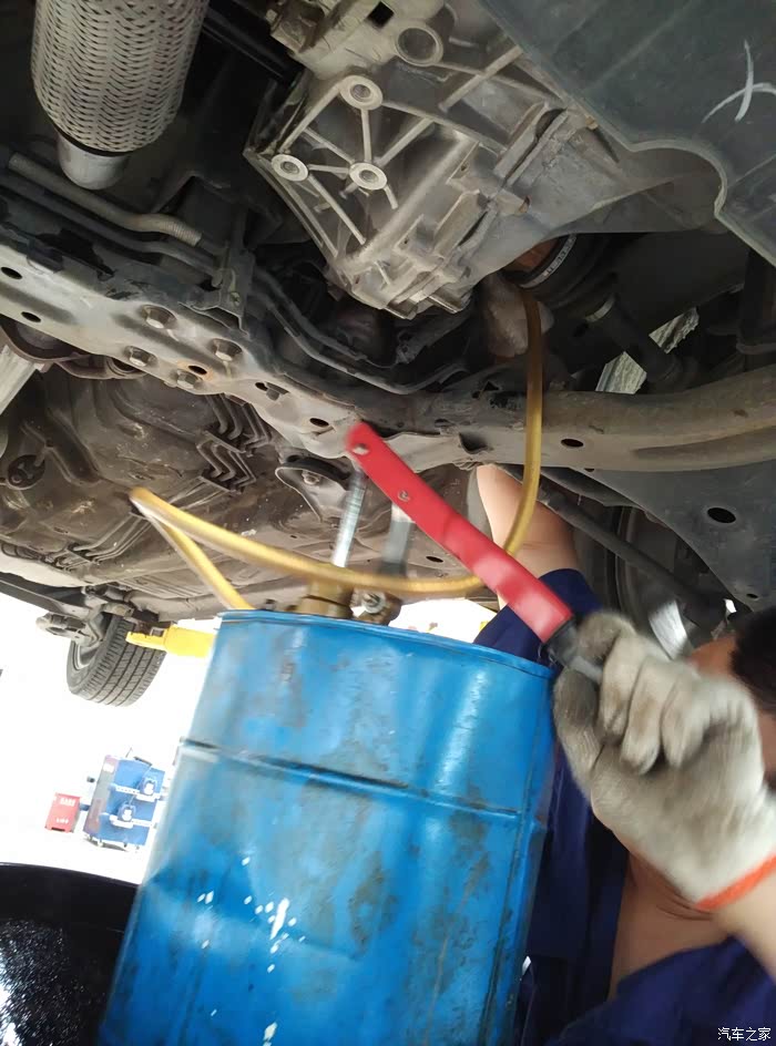 把齿轮油往一个压力桶里倒,这个更换变速箱油在家是没办法完成的,还需要专用的工具