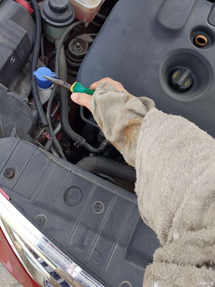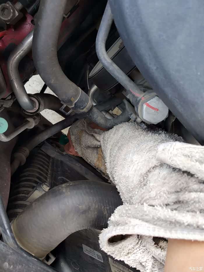 发动机热乎的,湿毛巾裹起来防烫伤