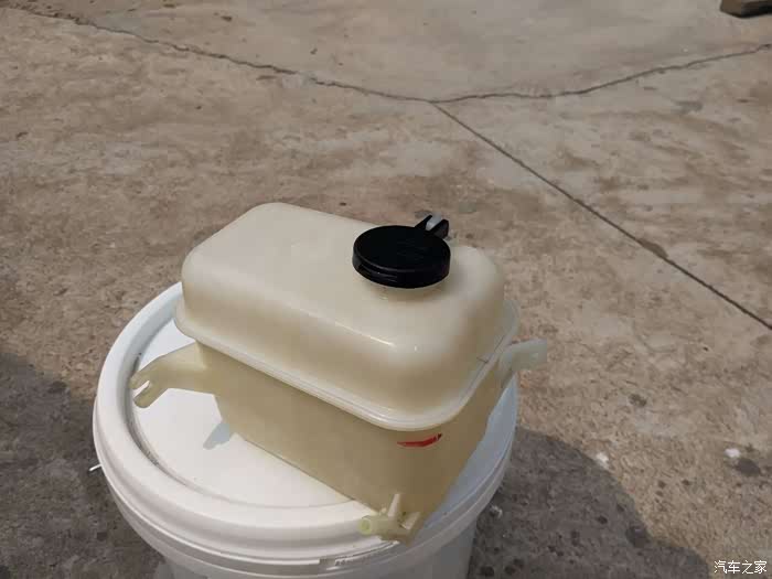 左侧的白色水壶里面,红色液体就是原车的防冻液