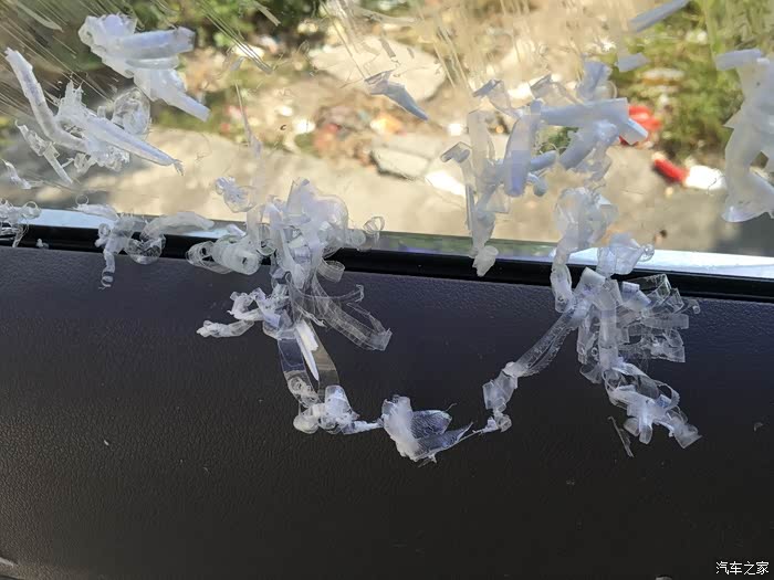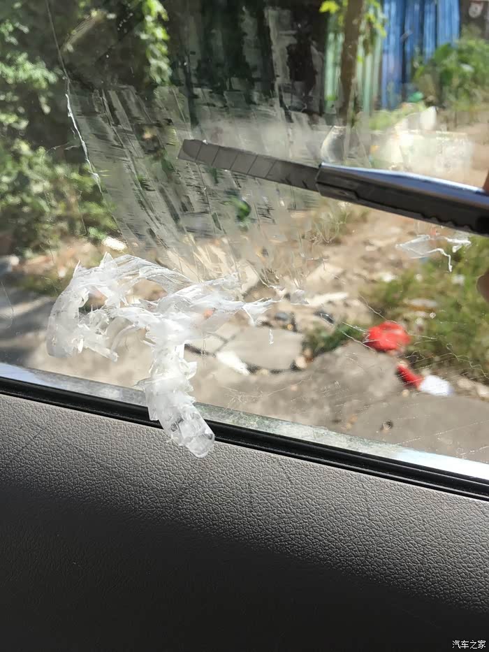 刚买车时贴的玻璃膜太差了,四年不到就开始起泡、模糊看不清了。所以想给它更换新的,这是原来的膜先把它撕下来。可是.............杯具了