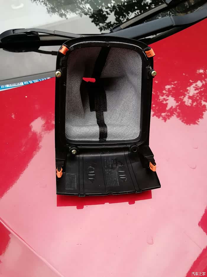 接下来就比较尴尬了,百度的教程里面说的是有卡扣,可是我一直没有摸到卡扣的位置,最后诗人看见我弄得着急,来帮我。因为是塑料制品怕破损后得不偿失,我一直让诗人慢点儿撸,不要给我弄破了。经过我们两人的共同努力,前面的卡扣也得以成功取下。来看看取下后的全图。