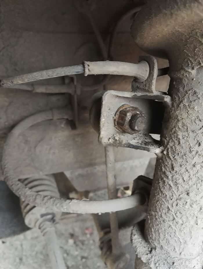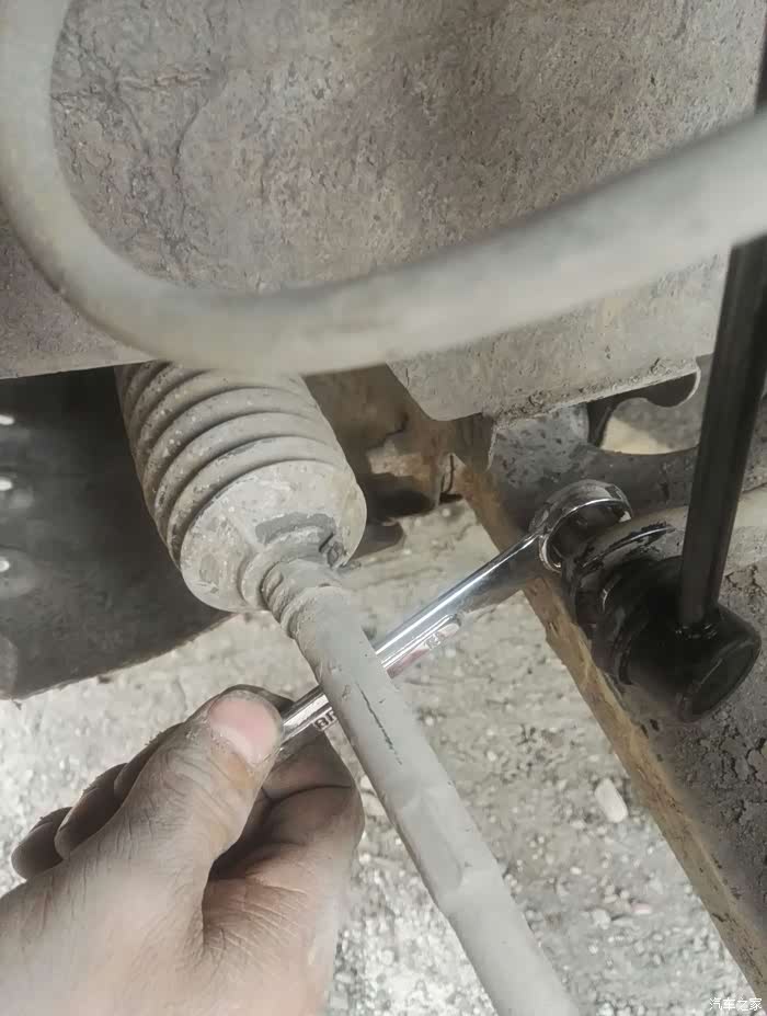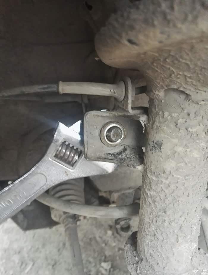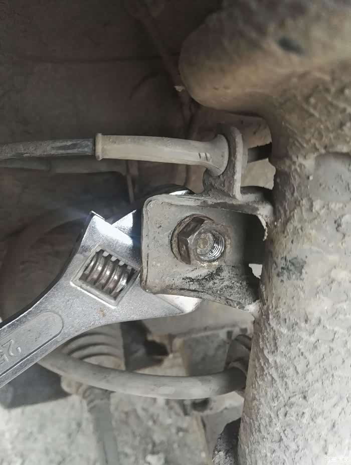 看见这个螺丝,首先把螺丝丝牙的泥土处理掉,一下好拆一点。用18的扳手把螺丝朝逆时针拆松。一定要用力。