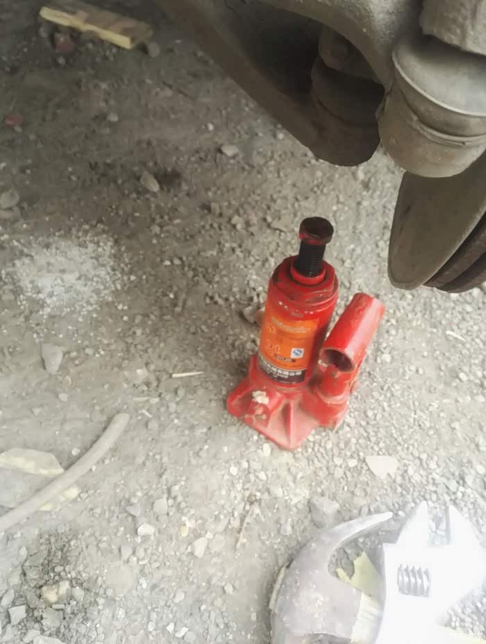 用另外一个千斤顶把悬挂顶起来。直到螺丝对准为止。