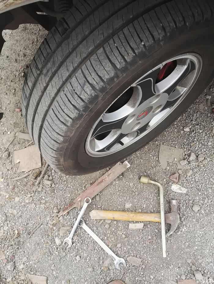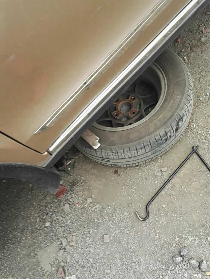 如果换左边,首先把轮胎朝左打死 ,如果换右边就往右打死,方便一下取拉杆,千斤顶打起,接着取下轮胎。
