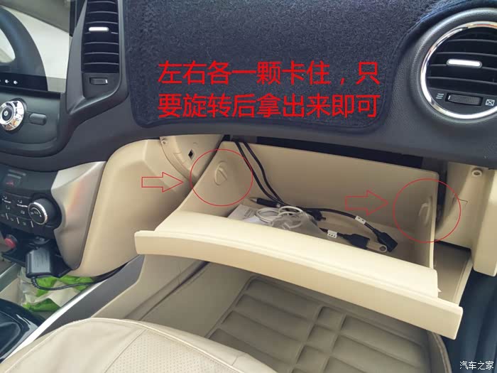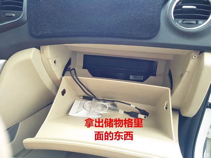 将储物箱的东西拿出来,方便等下换空调滤芯。