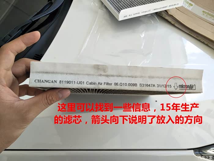 拿出来的滤芯我们来研究下,可以看到长安的标志,还有一些信息。
