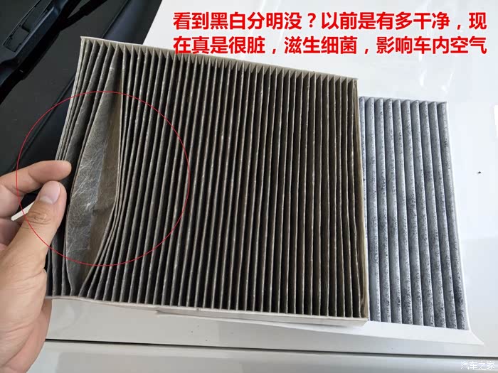 我是第一次更换滤芯,平时也经常把滤芯拿出来吹一下,毕竟太久不清理会很脏。空调滤芯的作用是过滤进入车里的空气,把空气中的灰尘、树叶等杂质挡住,保证进入车内的空气清新,保护人的身心健康。