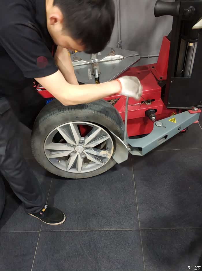 师傅开始拆轮胎了。
