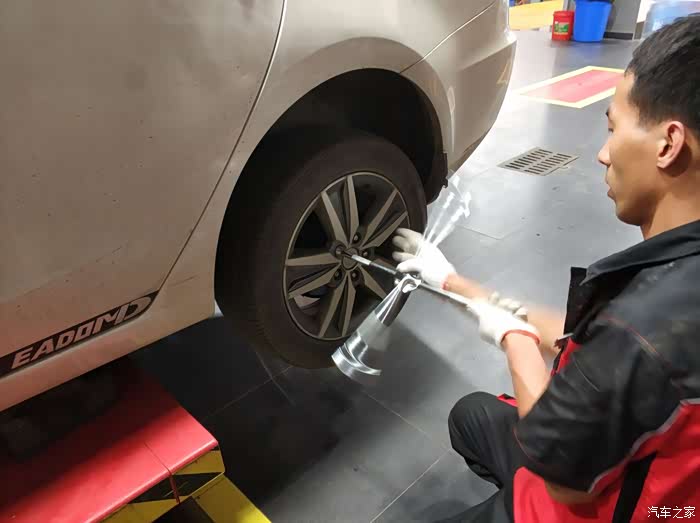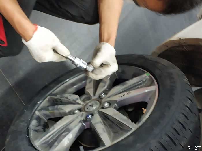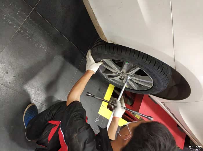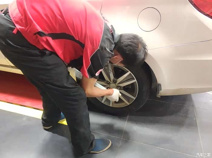 轮胎着地在固定一下螺丝,为师傅的细心点赞!