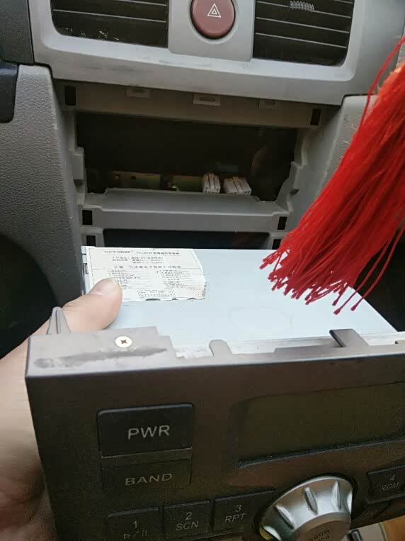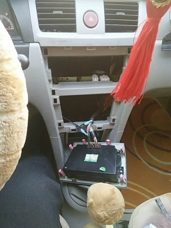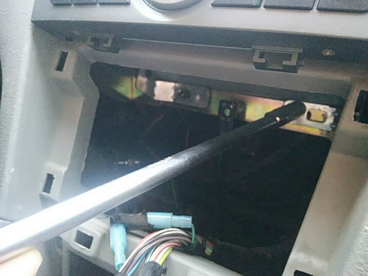 拆下空调面板,露出来收音机的两个固定螺母,十个的,左右各一个,别拧中间那个