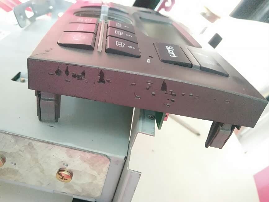 收音机侧面,原来被我挺坏的,不知道里面的螺丝,以为和空调板一样,硬撬