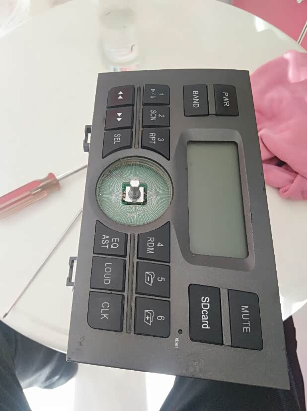 这个是拆下来的空调暖风控制面板,这家伙没螺丝固定,用撬板从两侧撬出来就行,里面就四个塑料卡子!