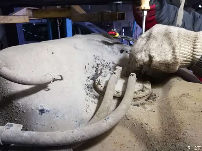 安装汽油泵总成的这个凹槽里全是泥土