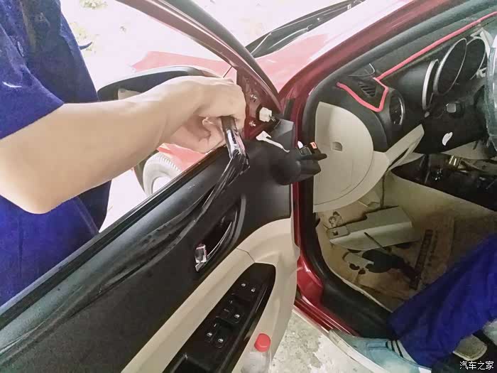 因为亮化条有颗螺丝在后视镜旁边,所以必须要拆后视镜